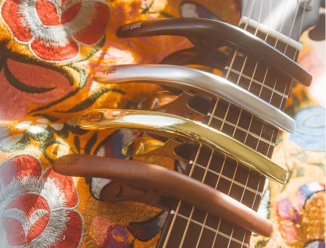 This Axis Capo’s ergonomic features allow for fast and accurate single-handed key changes. Reversible design accommodates different fretboard radiuses, ensuring buzz-free operation on 6 or 7 string electric and acoustic guitars. With the standard color options of Black, Silver, Bronze, and Gold now joined by new Rose Gold, Gold Satin, Blue Steel, or Pewter finishes, you can pick out a capo that suits your style and inspires your next song.